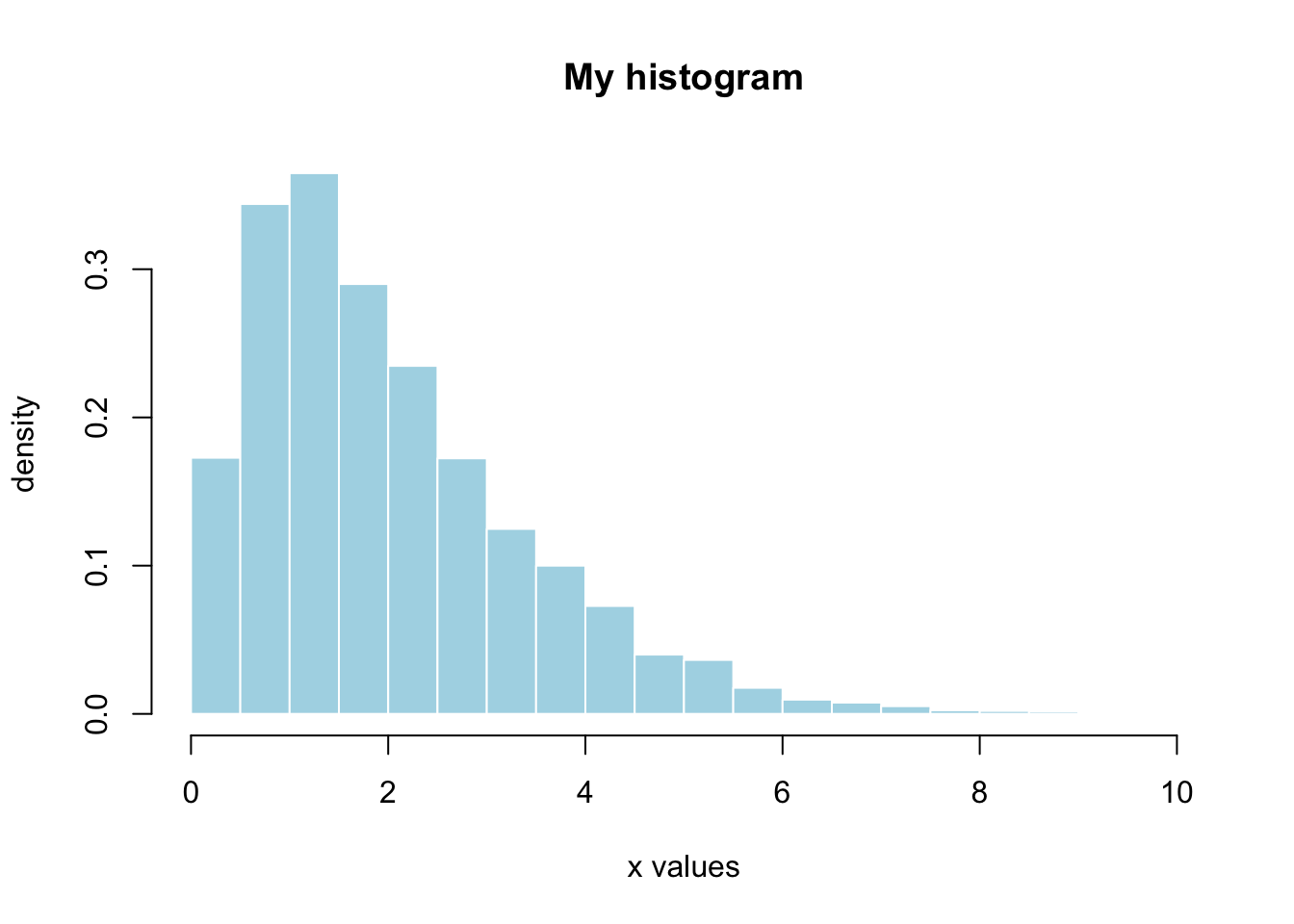 breaksdetermines the size of the bins (ie how many bars the histogram has). You can play around with different options, but I always setbreaks = "Scott"because David Scott was one of my professors in graduate school and he knows his shit. So we pour one out for David and setbreaks = "Scott"; - if you set